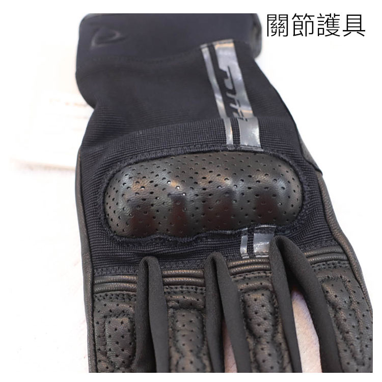 反縫式摩托車手套,適合夏季使用,指關節處有硬殼皮革保護。