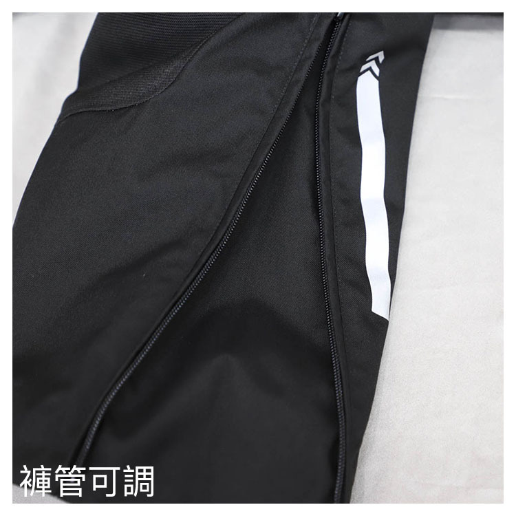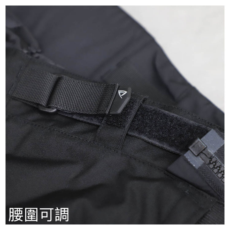 △腿端可通過獨立調節的長拉鍊和尼龍搭扣帶進行可變調節