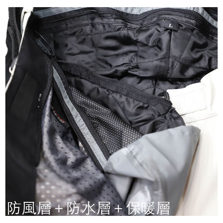 • 胯部區域和喉嚨處有防風塗層織物彈力