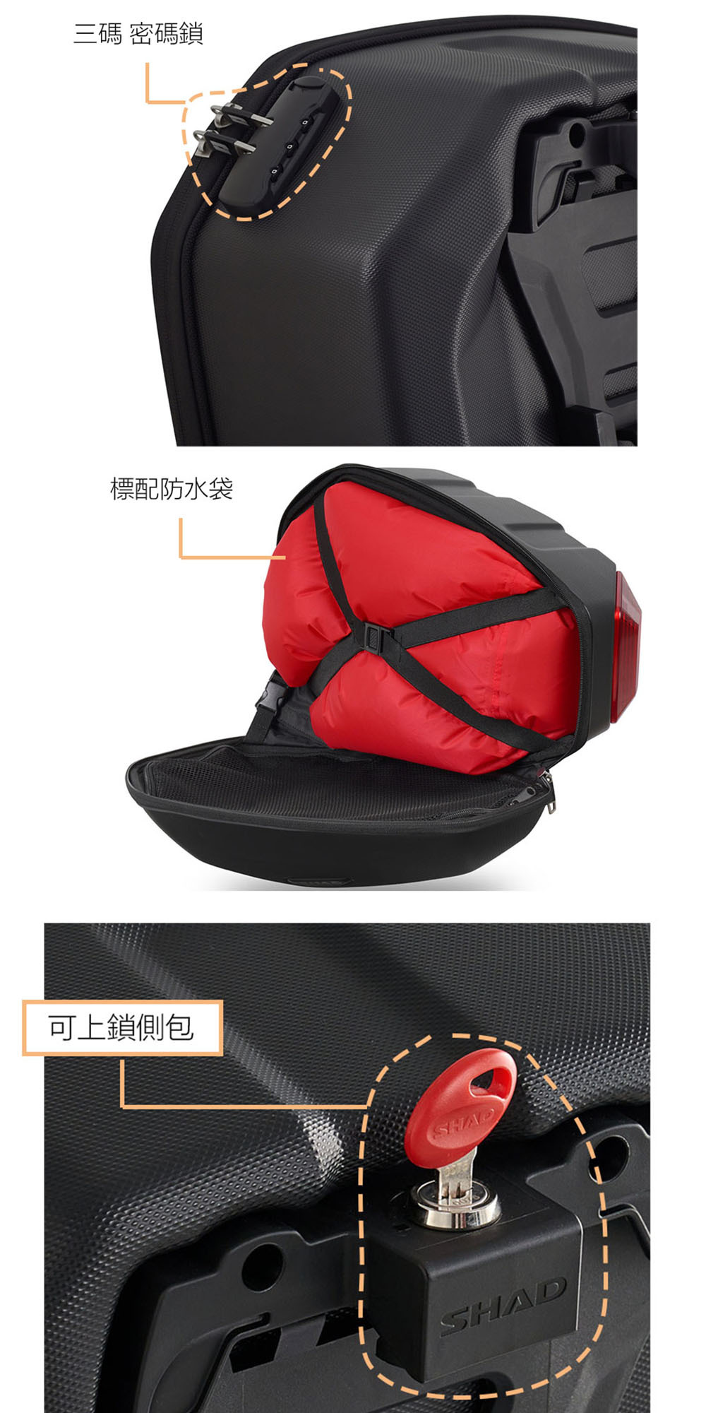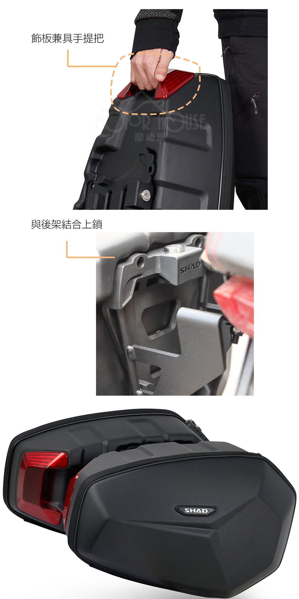 ✅選配:安裝時,需搭配(另購)SHAD原廠專用SR架
